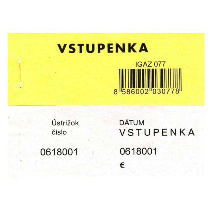 Vstupenka číslovaná 2-dielna, 100 lístkov.
