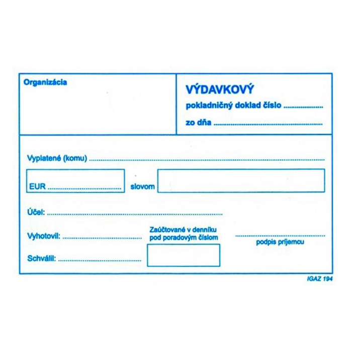 Výdavkový pokladničný doklad bez DPH, formát A6, blok 100 listov.