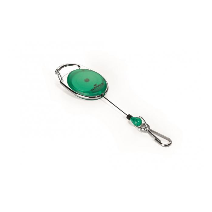 Štýlový kotúč s oválnym farebným telom a kovovým klipom so svorkou poskytuje rýchlu a jednoduchú manipuláciu s visačkou, príp.kartou. Vysunutie kotúča do dĺžky 80 cm. Dodávaný bez visačky. Farba zelená.