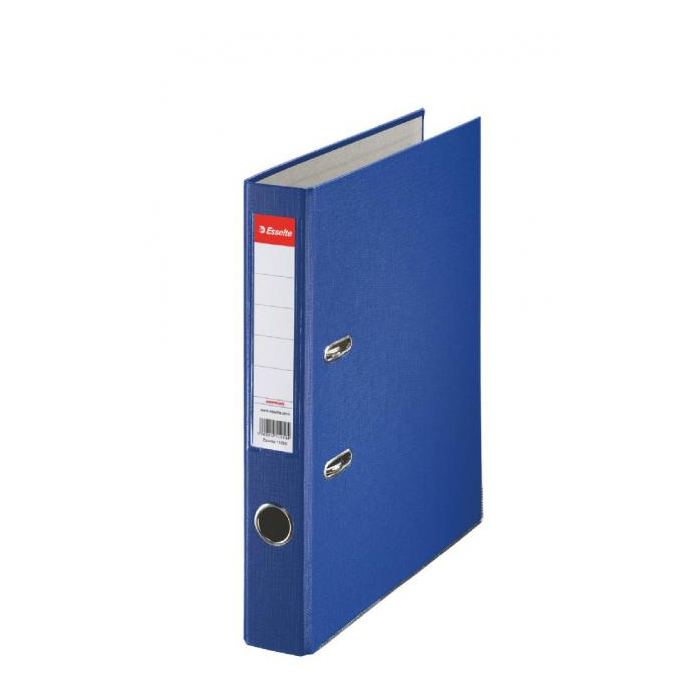 Pákový zakladač formátu A4, potiahnutý z vonkajšej strany plastom a z vnútornej hladkým papierom. Vybavený chrbtovým krúžkom, vreckom s vymeniteľným chrbtovým štítkom, ochranným spodným kovaním a uzatváracím mechanizmom. Šírka chrbta 5 cm. Väčšie balenie 25 ks. Chrbát: 5 cm Farba: modrá