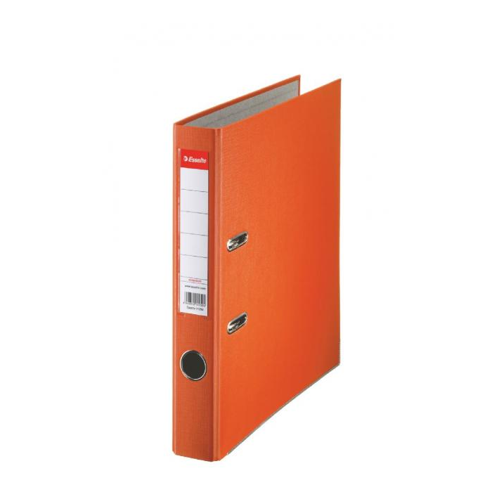 Pákový zakladač formátu A4, potiahnutý z vonkajšej strany plastom a z vnútornej hladkým papierom. Vybavený chrbtovým krúžkom, vreckom s vymeniteľným chrbtovým štítkom, ochranným spodným kovaním a uzatváracím mechanizmom. Šírka chrbta 5 cm. Väčšie balenie 25 ks. Chrbát: 5 cm Farba: oranžová