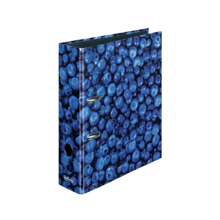 Pákový zakladač radu maX.file protect laminovaný, formát A4. Šírka chrbta 8 cm, bez štítku, otvor na zadnej strane a radokrúžok pre lepšiu manipuláciu. Motív čučoriedky.