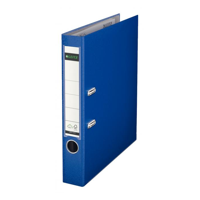 Patentovaný pákový celoplastový zakladač formátu A4 vyrobený z kvalitného kartónu. Vonkajšia strana potiahnutá farebnou polypropylénovou fóliou, vnútorná svetlosivou fóliou. Zakladač je vybavený vysokokvalitnou mechanikou Leitz, chrbtovým krúžkom, kovovou lištou a vymeniteľným papierovým štítkom na popis. Vysokokvalitná mechanika umožňuje o 50 % širšie otvorenie zakladača než dovoľuje bežná páková mechanika, čo znamená až 20 % úspory času pri manipulácii a archivácii dokumentov. Šírka chrbta 5,2 cm. Väčšie balenie 10 ks. Farba tmavo modrá.