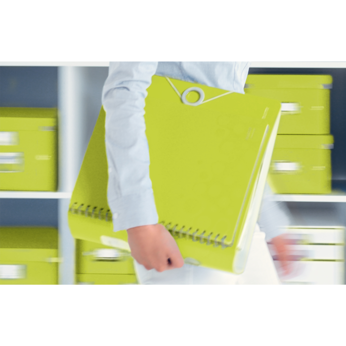 Inovatívny mobilný zakladač v žiarivých WOW farbách s dvojfarebným efektom. Dvojvrstvový PP materiál vyplnený penou z tzv. Polyfoamu, ktorý je extrémne odolný a ľahký. Unikátna páková mechanika s otvorením o 180°, ktorá umožňuje o 50 % širšie otvorenie a o 20 % rýchlejšiu prácu so zoraďovačom. Praktické uzatváranie zoraďovača na gumičku pre bezpečný prenos. Vnútorný obal na voľné papiere, CD/DVD a vizitky. Zaoblený chrbát a praktická úchytka na pero pre pohodlné mobilné použitie. Šírka chrbta 7,5 cm, kapacita 500 listov A4 (80 g/m²). Farba zelená.