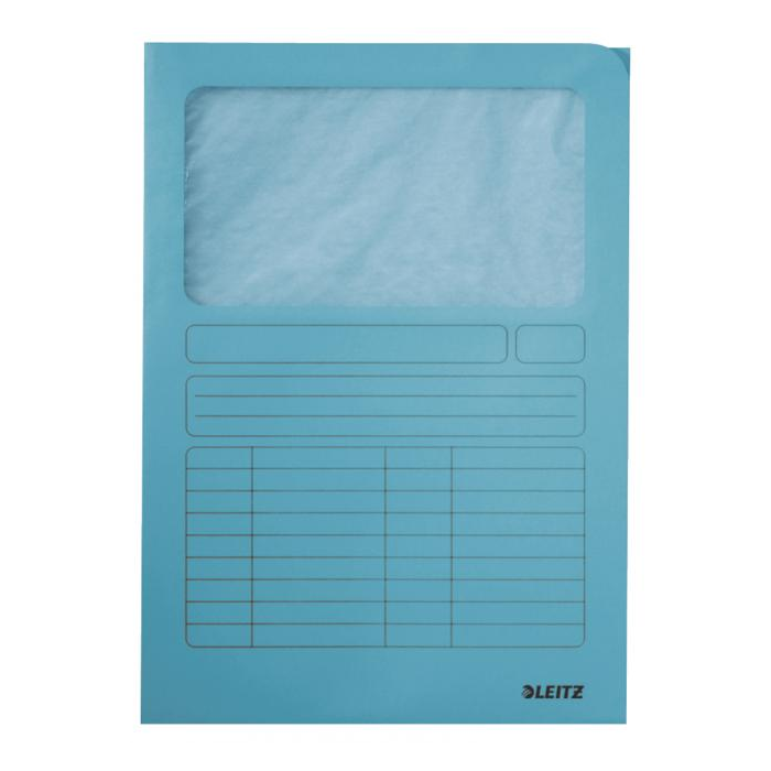 Praktické zakladacie zložky otvorené zhora a z pravej strany formátu 220×310 mm s oknom z fólie. Vyrobené zo 100% recyklovaného papiera Manilla gramáže 160 g. Farba: svetlomodrá
