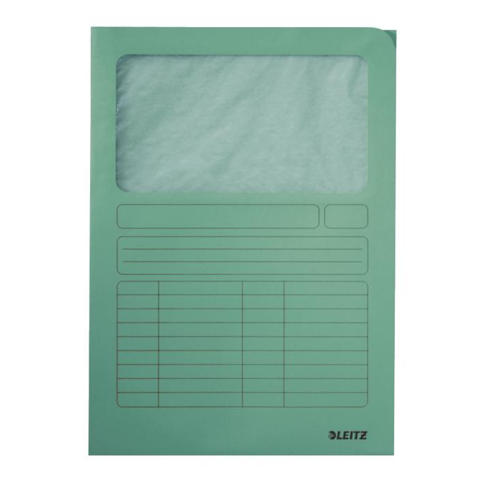 Praktické zakladacie zložky otvorené zhora a z pravej strany formátu 220×310 mm s oknom z fólie. Vyrobené zo 100% recyklovaného papiera Manilla gramáže 160 g. Farba: svetlozelená