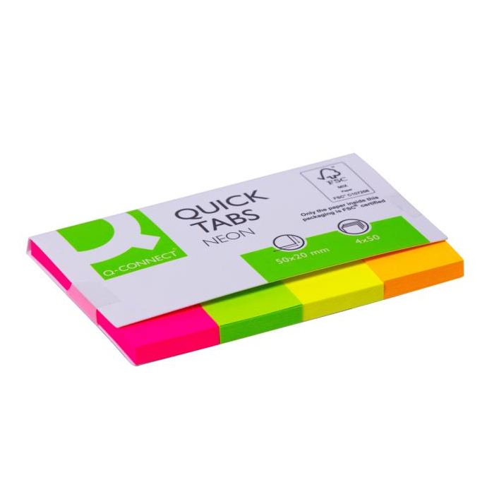 Záložky Q-CONNECT, papierové, 20x50 mm,4x50 lístkov