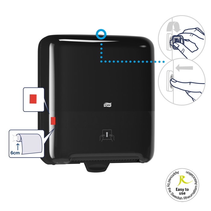 Vysokokapacitný zásobník Tork Matic® ideálny pre toalety a umyvárne s vysokou frekvenciou návštevnosti. Dávkovanie po jednotlivých utierkach znižuje spotrebu a náklady. Vyrobený z ABS plastu s vysokým leskom. Rozmery 327 × 337 × 203 mm, farba čierna.