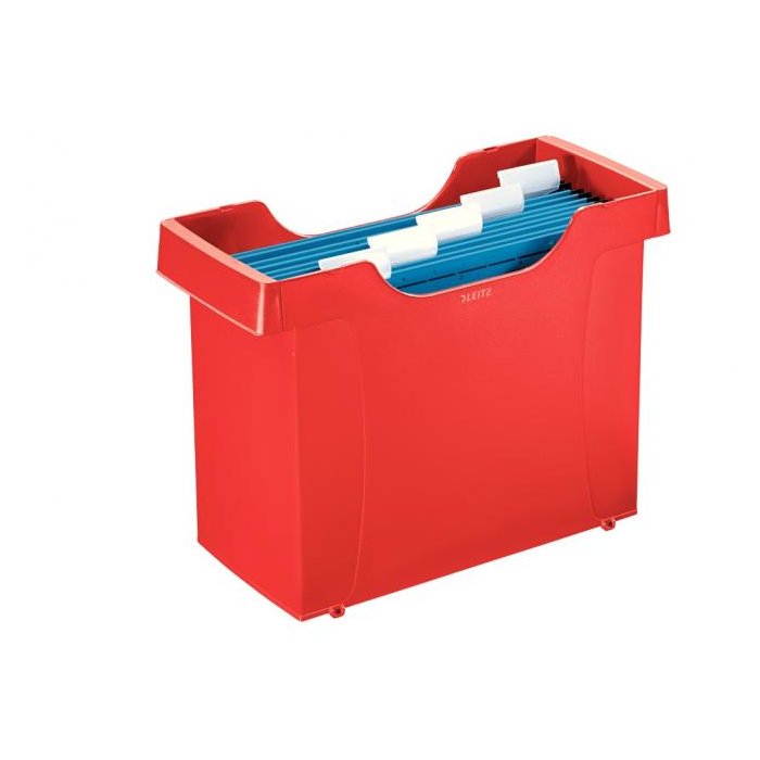 Zásobník na 20 štandardných závesných obalov formátu A4 s predným výrezom a postrannými skrytými držadlami na prenos. Dodávaný s 5 závesnými obalmi Leitz Alpha. Vnútorné rozmery 370 × 260 × 162 mm.