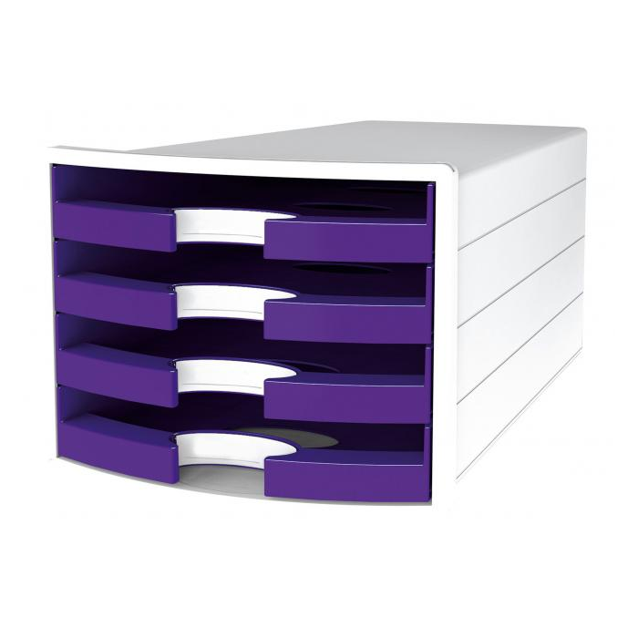 Box so štyrmi otvorenými zásuvkami v tvare počítačového monitora v trendových farbách. Rozmery (š × v × h) 294 × 235 × 368 mm. Farba fialová.