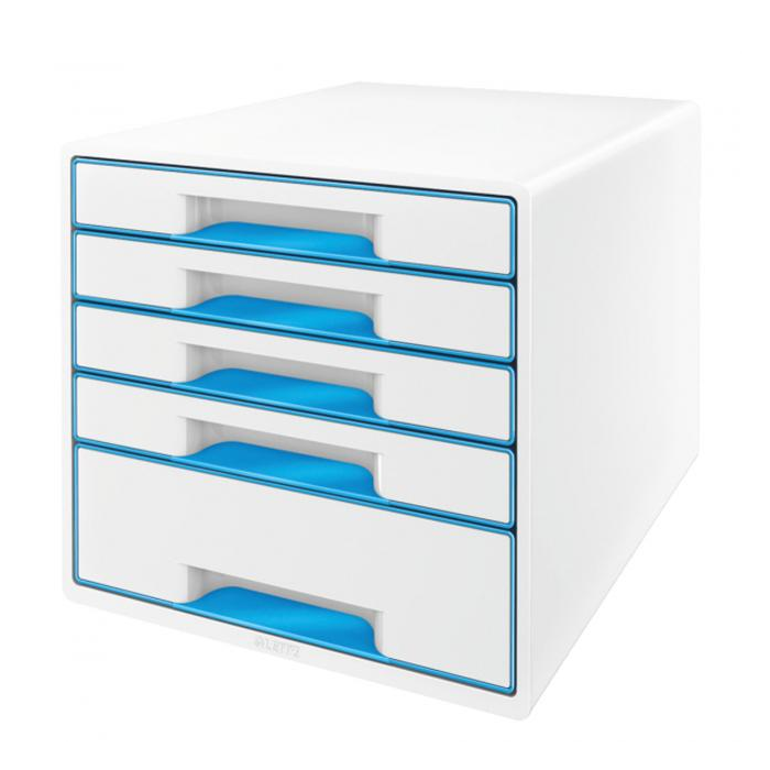 Zásuvkový box Leitz WOW s 5 zásuvkami metalický modrý
