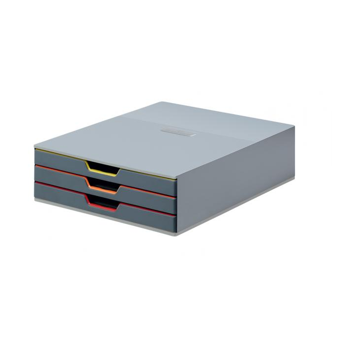 Boxy s 3 zásuvkami s vnútrami dúhových farieb dodajú kancelárii nádych elegancie. Pri ich zatvorení farebné línie iba jemne vystupujú z elegantnej sivej farby, pri otvorení sú žiarivé farby dúhy potešením pre oči. Dodávané s priehľadnými plastovými indexami na označenie obsahu. Boxy sú stohovateľné, zásuvky zabezpečené proti vypadnutiu. Materiál najkvalitnejší ABS plast, tichý a ľahký posun zásuviek, spodná strana s protišmykovou ochranou. Víťaz Product design award 2013. Rozmery (š × v × h) 95 × 280 × 356 mm.