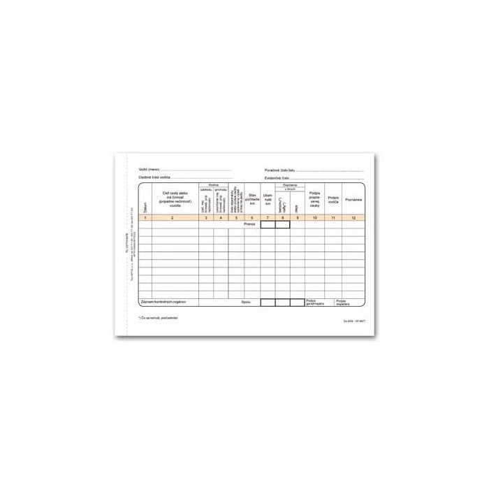 Dopravné tlačivo. Záznam o prevádzke vozidla osobnej dopravy, samoprepis s kartónom, A5, kniha, 100 listov.