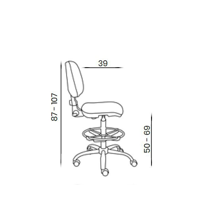 • Rozmery: šírka operadla 38,0 cm; výška operadla: 32,0 cm; šírka sedadla: 43,0 cm; hĺbka sedadla: 39,0 cm; nastaviteľná výška sedu: 60,0 - 86,0 cm