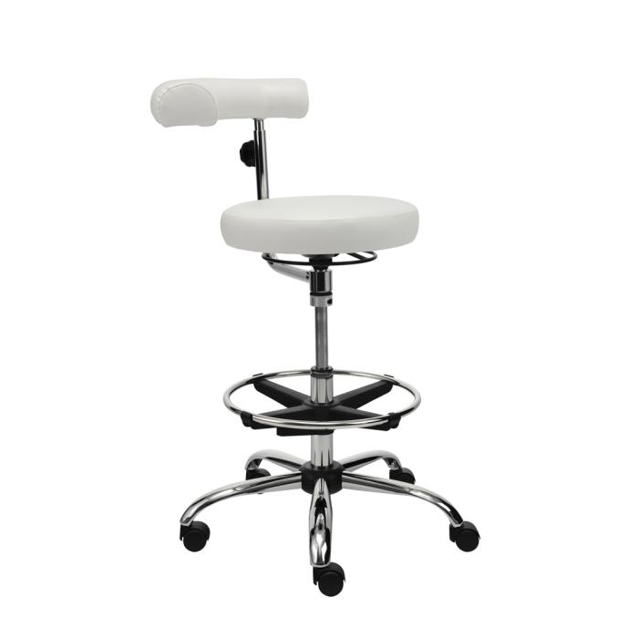 Pracovná čalúnená stolička. Nastavenie opierky vo vodorovnom a zvislom smere, pevný uhol medzi sedadlom a opierkou, plynový piest. Nosnosť 110 kg. AB1290 08 navyše vybavená nástavcom s kruhom na nohy s pevnou výškou. Dodávaná bez podrúčok. Farba biela.