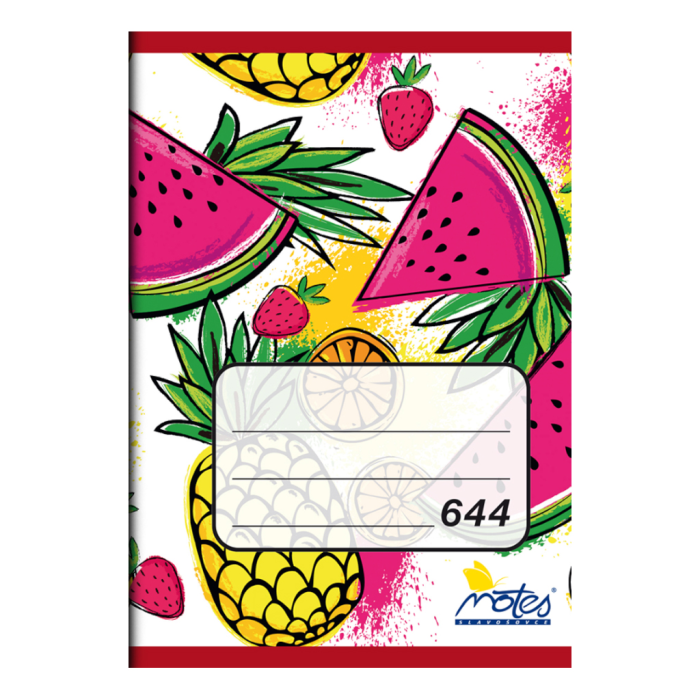 Zošity z bezdrevného papiera, 40-listové, obal polotuhý. Formát A6, úprava linajková. Výška riadka 8 mm. Dodávané v mixe 2 vzorov bez možnosti výberu konkrétneho vzoru. Väčšie balenie 10 ks.