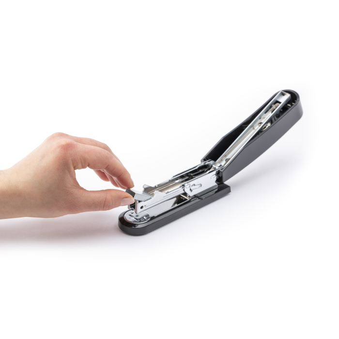 Ľahká zošívačka s kovovým zásobníkom a jednoduchým vedením spiniek. Kapacita náplne 100 spiniek 24/-6 alebo 150 spiniek 26/-6. Hĺbka zošívania 6,5 cm. Hmotnosť 175 g. Záruka 10 rokov. Farba: čierna Kapacita listov: 25 Hĺbka zošívania: 6,5 cm