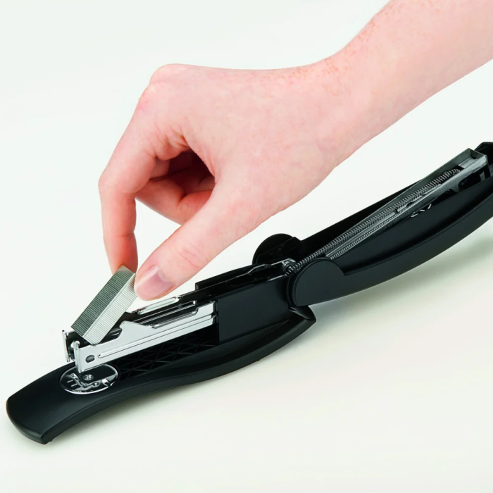Kancelárska zošívačka na stôl aj do ruky v modernom dizajne. Zásobník spiniek s plastovým osadením a jednoduchým vedením spiniek. Kapacita náplne 100 spiniek 24/ 6 alebo 26/ 6. Hĺbka zošívania 6,5 cm. Hmotnosť 140 g.
